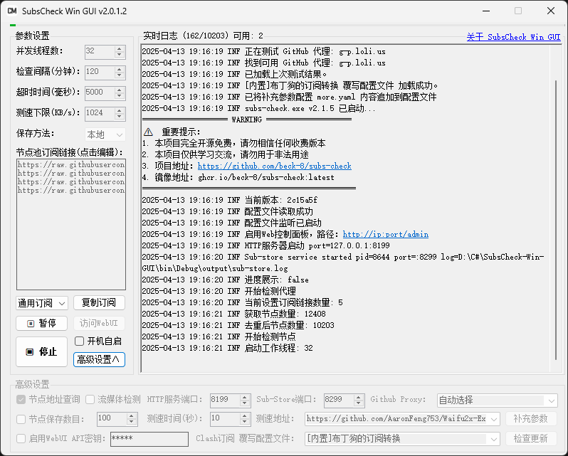 - 免责声明:SubsCheck-Win-GUI 的创建者和贡献者不对因使用或滥用本软件而导致的任何损害或法律问题负责。